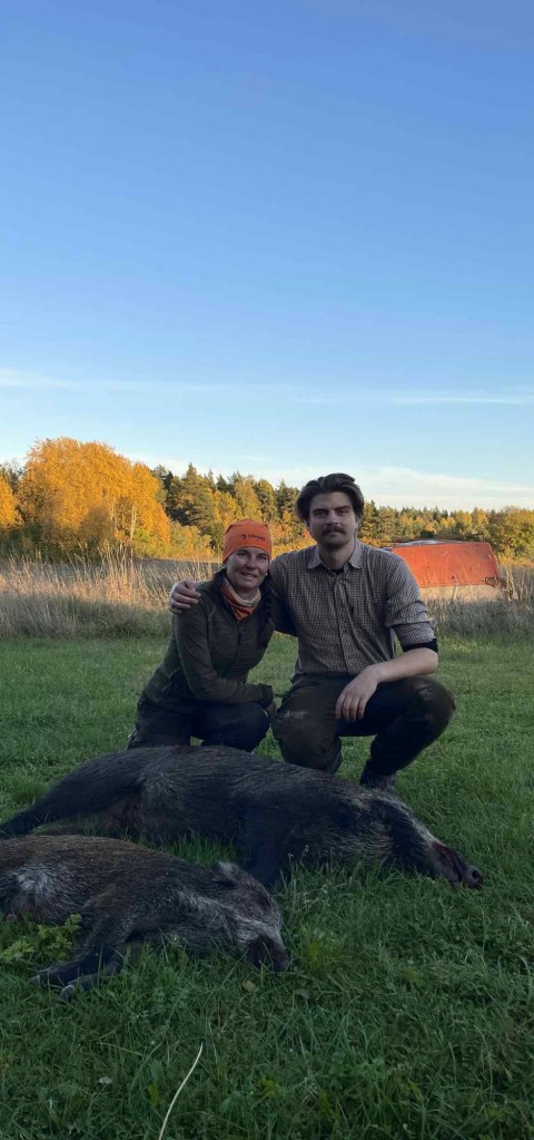 Sen har det rullat på med flera bra jakter. Unga hundar som jag har varit med och sett utvecklas i jakten. Roligt! Så klart den traditionsenliga helgen i Småland med våra underbara vänner. Umgänge och jakt. Sånt älskar jag. Där fick jag chansen att skjuta en större kulting på drevjakt. Sammanlagt sköts fyra vildsvin där!