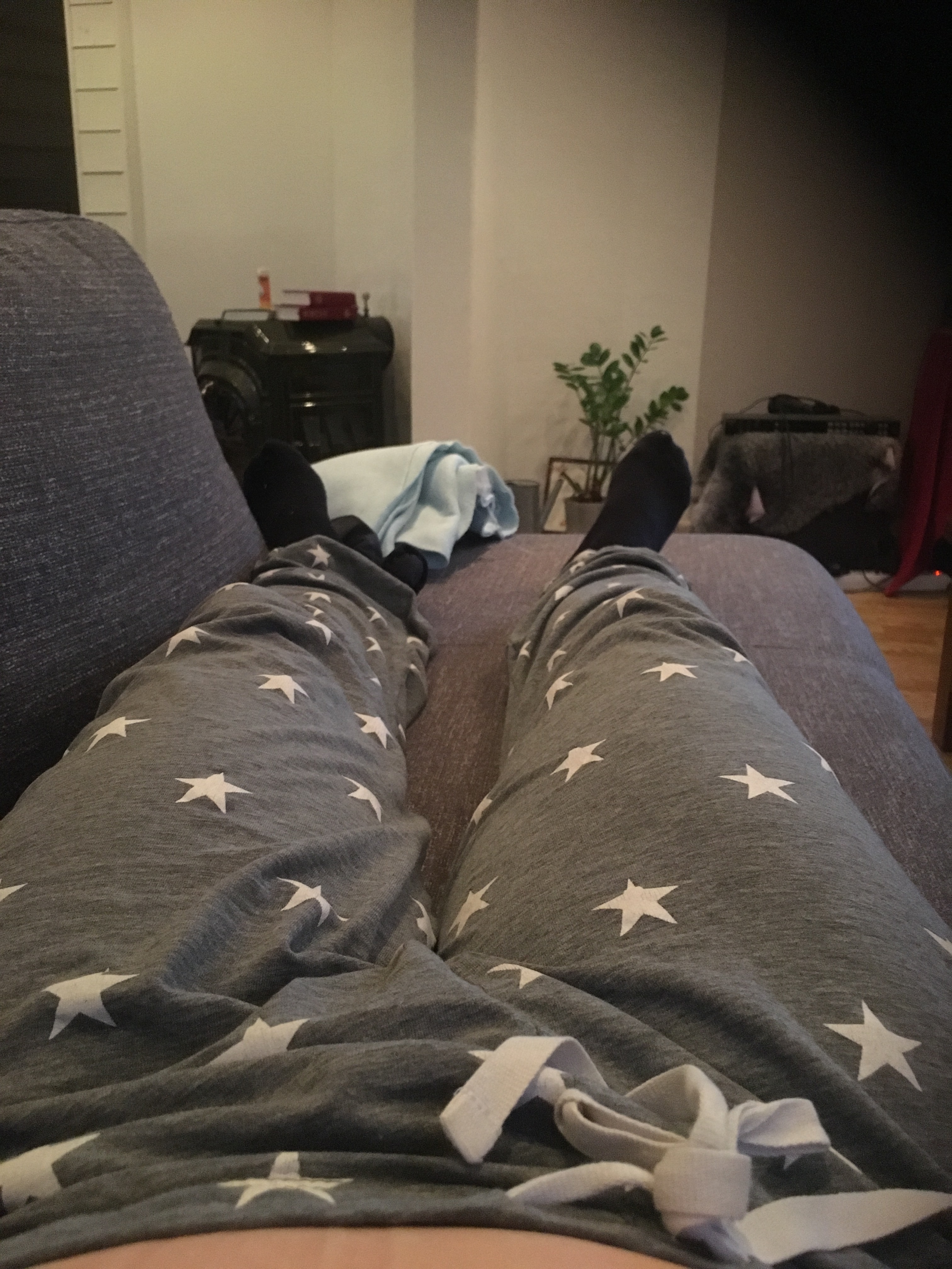 Men det var lugnt och jag var galet trött. Så jag åkte hem och hoppade ner i soffan och svidade om till pyjamas.
