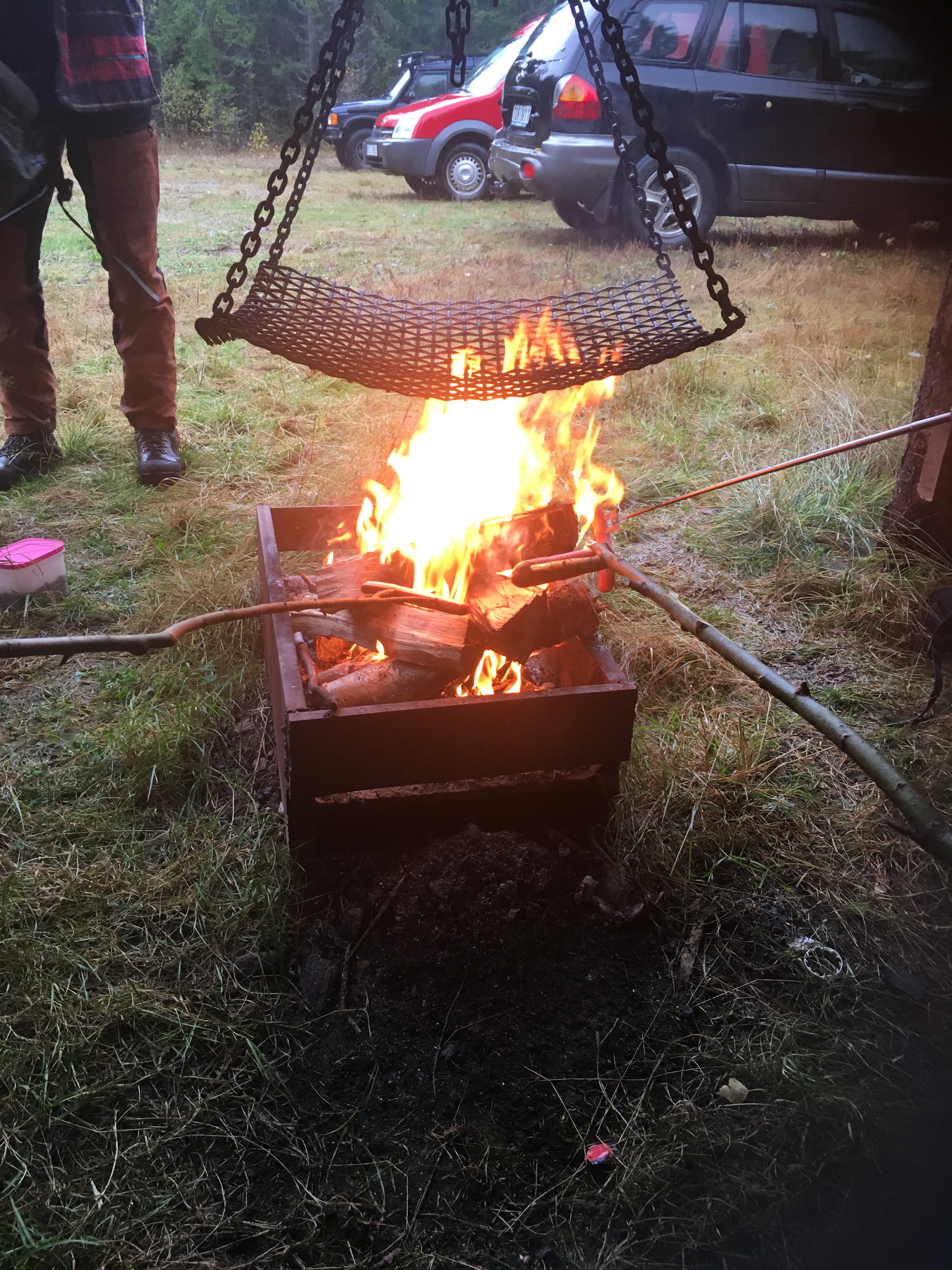 Samling i kojan 6.30 där brasan brann. Stämningen var på topp trots att regnet öste ner. Pass delades ut och vi alla gav oss iväg.