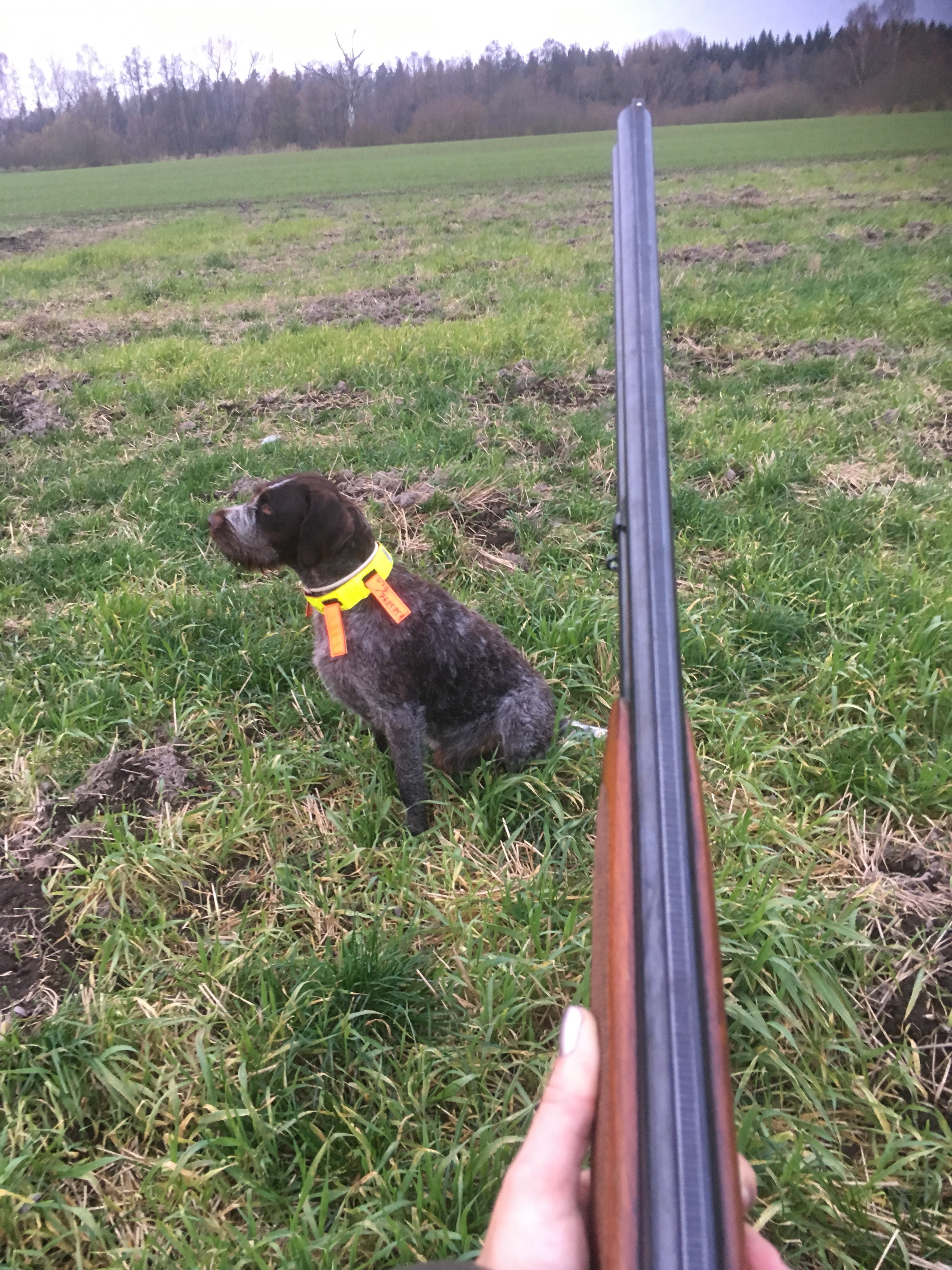 Efter detta så bröt vi för dagen men jag och Lotta tog vorsten Raffe för ett försök på fasan. Vi stötte upp två stycken och jag siktade med den lånade bössan. Dessvärre krånglade säkringen så inget skott gick av. Vi såg de flaxa iväg. Gick vidare på den grisbökade ängen och såg några fler fasaner lyfta men på andra sidan videt så vi kom inte till skott. Men kul var det.