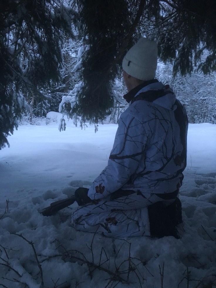 Det var galet mysigt att sitta där under granen men inte fan kom det någon räv!