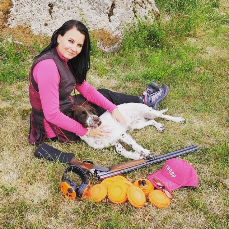 Min underbara wachtelhund Bella fick och leka fotomodell. Hon var dock lite för uppspelt och tog inte alls detta uppdrag på allvar. Blev förvånad över att bilderna blev så pass bra med henne. Det syns ju inte alls att hon försökte käka upp hagelpatronerna, eller gnaga på bössan eller attackera fotografen. Kommandot ”Sitt” som hon kan till 100% var rena grekiskan helt plötsligt. Hon la sig på ryggen istället. Knäppa hund!
