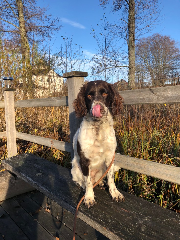 Jakt här hemma i Funbo söndag. Första såten gick jag med Bella och hon fick upp och började driva så fort jag släppt henne. Såg inget djur tyvärr men det fanns gott om grisbök och drevet gick rätt ner i sjön där hon släppte och vände. Hon är inte så erfaren att hon håller i där. Känns rätt vettigt om det nu är vildsvin som kliver ner i vassen och ställer sig.