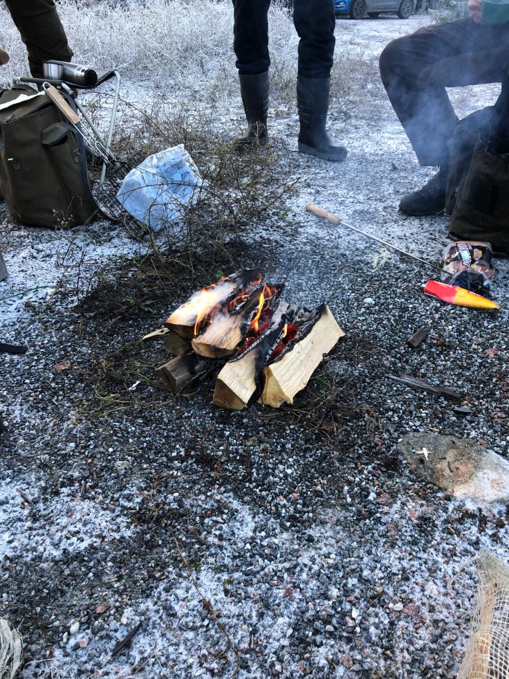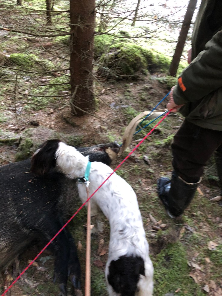 Vi fortsatte framåt och Bella var taggad hela tiden. Drev rådjur och hare men troligen också gris förstod vi i efterhand då tre mindre gått ut på en passkytt. Kul! Men svårt att veta.