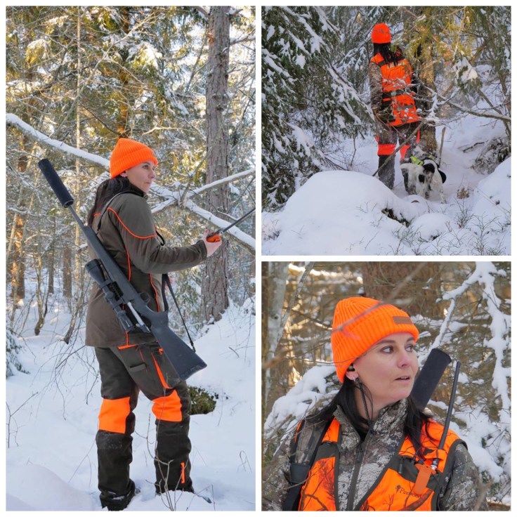 Underbar dag i skogen i söndags. Det är ju så härligt att vara i skogen när det är snö och samtidigt solsken. Idag hängde Sanna J med för att fota mig i snygga kläder från hennes butik Sanna J Jaktkläder.