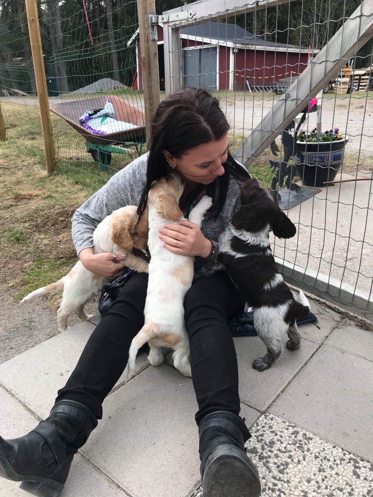 Stannade till hos Zandra som har kennel Congratz. Vi lärde känna varandra när vi hämtade hem våra wachtelhundar från Finland (Brozhunters) då vi köpte systrar från samma kull. Nu har hon en kull valpar hemma och jag var tvungen att stanna till och få lite valpgos.