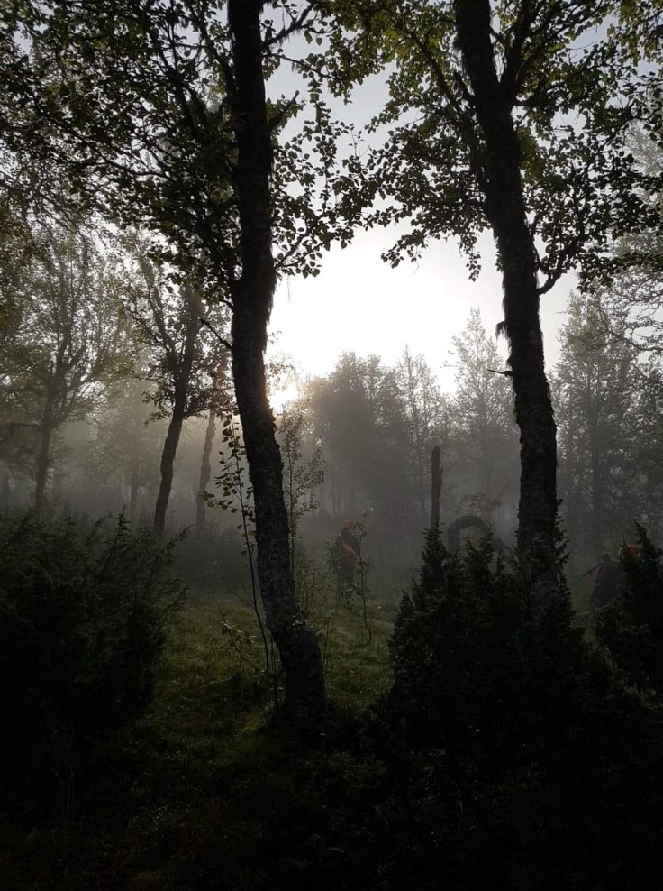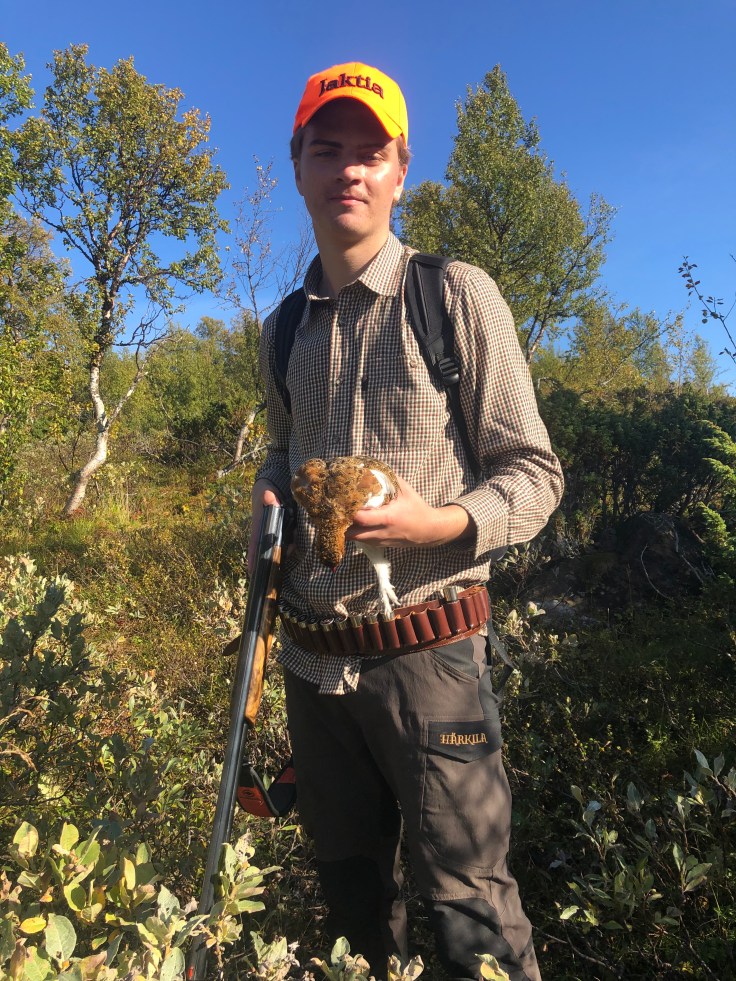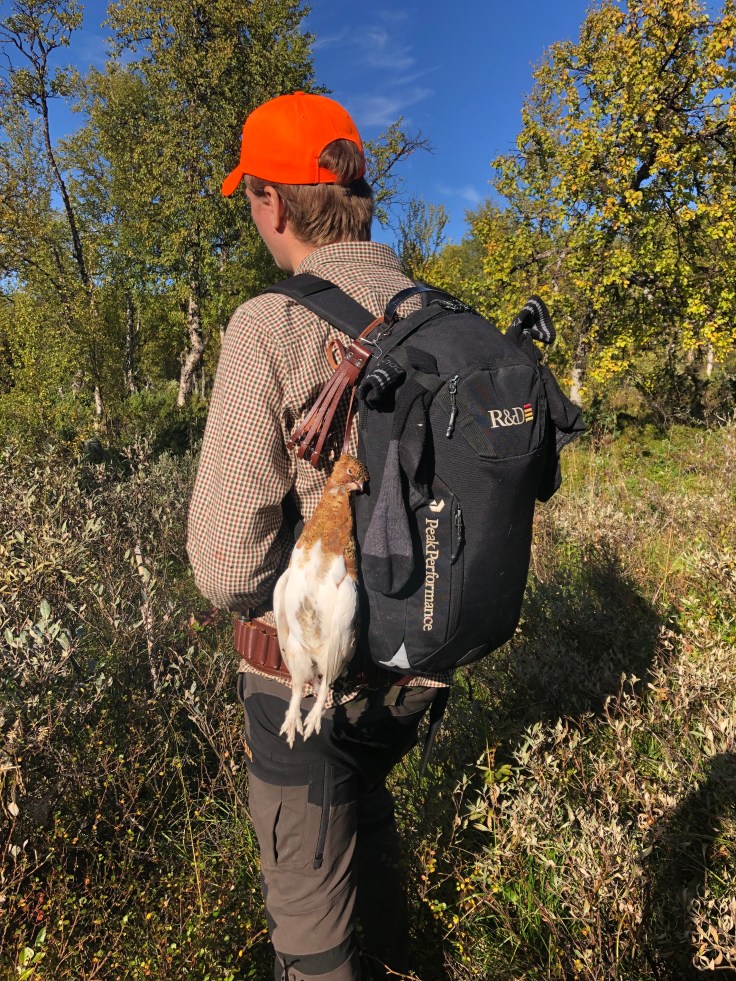 Första förmiddagen passerade utan att vi ens sett ripa. Men sen plötsligt händer det. Hunden som för tillfället söker står plötsligt i stånd och reser sen en ripa (på kommando, givetvis). Skott avlossas men blir en bom tyvärr. Ripjakten är svår men efter denna upplevelse så var killarna helt sålda. Sen hittade hundarna fler ripor. Flera kullar men även några singelripor. Så jäkla skoj. Ganska snart hade Olle skjutit sin första ripa! Galet roligt, mest för honom men även för mig! Stolt mamma!