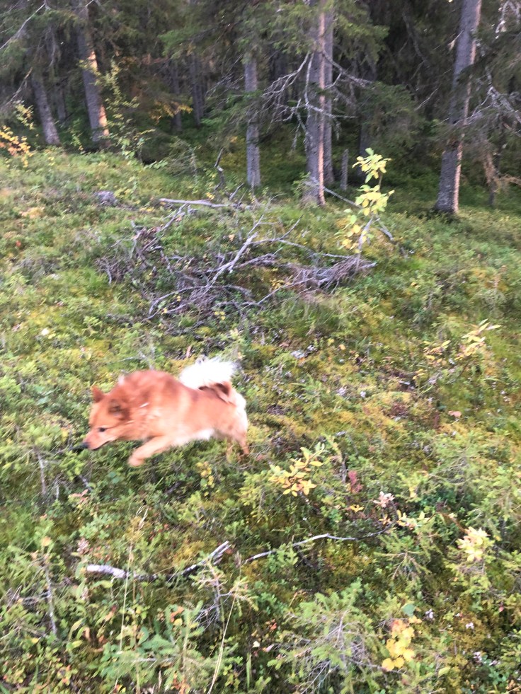Vi hann dock ta en repa med Simons finnspets för att känna på lite fågeljakt också. Så klart hade vi lite otur då vi inte sprang på någon orre eller tjäder trots att de visat sig mycket alla andra dagar. Men han skällde lite järpe i all fall så jag fick en känsla av hur det ska vara!