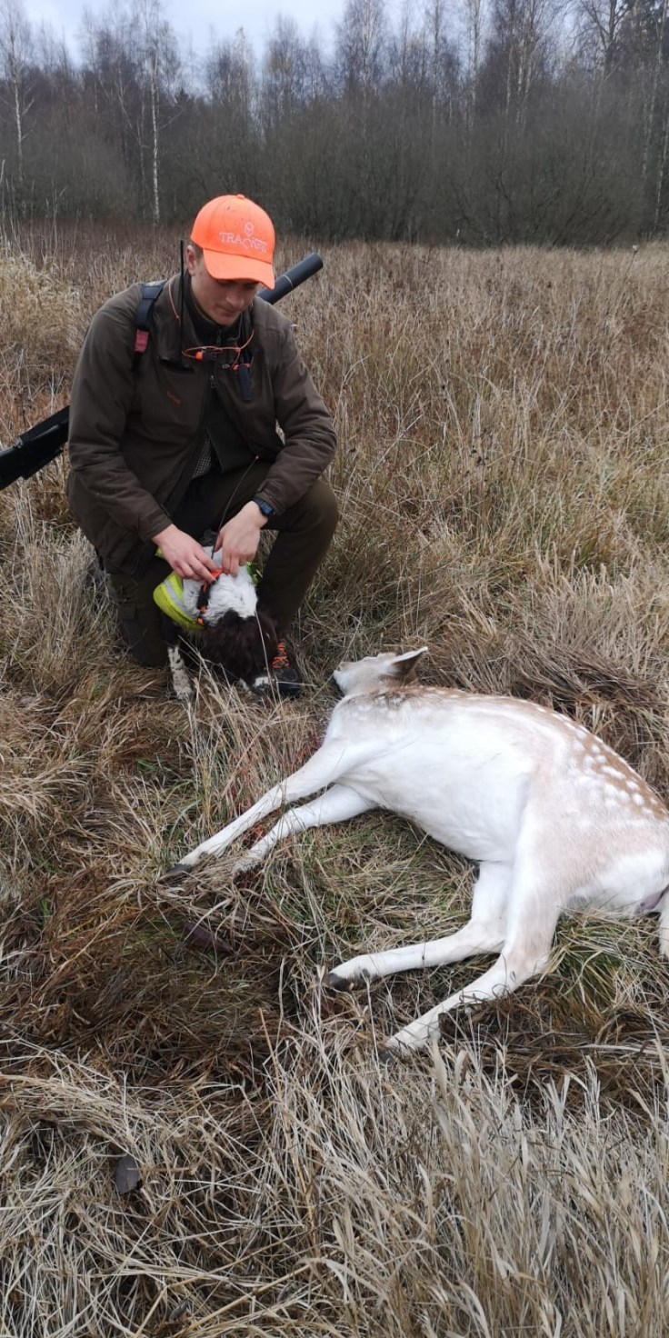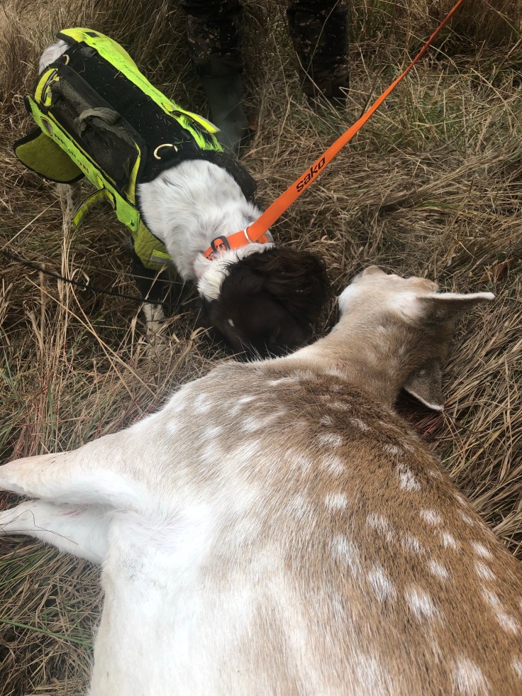 Eftersom jag alltid går med Bella fick Lill-husse göra det denna helg och det var ju lyckat. Hon drev dovhjort till Johnny som sköt en hind. Så jäkla skoj!