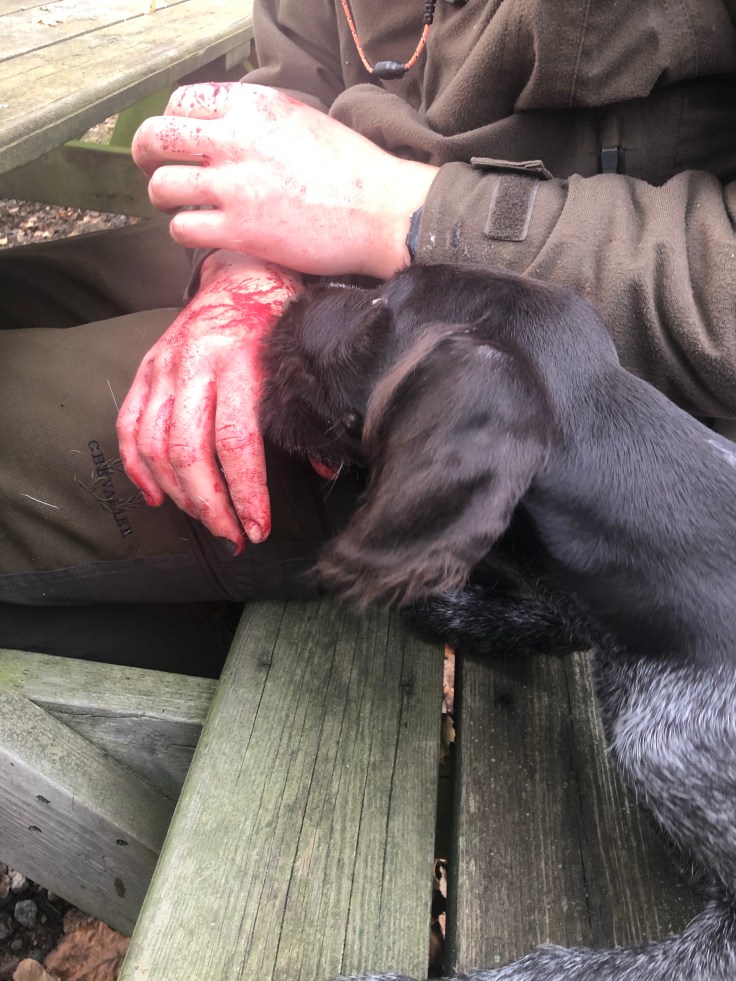 Vorstehvalpen Ellie tyckte det var spännande i slakteriet.