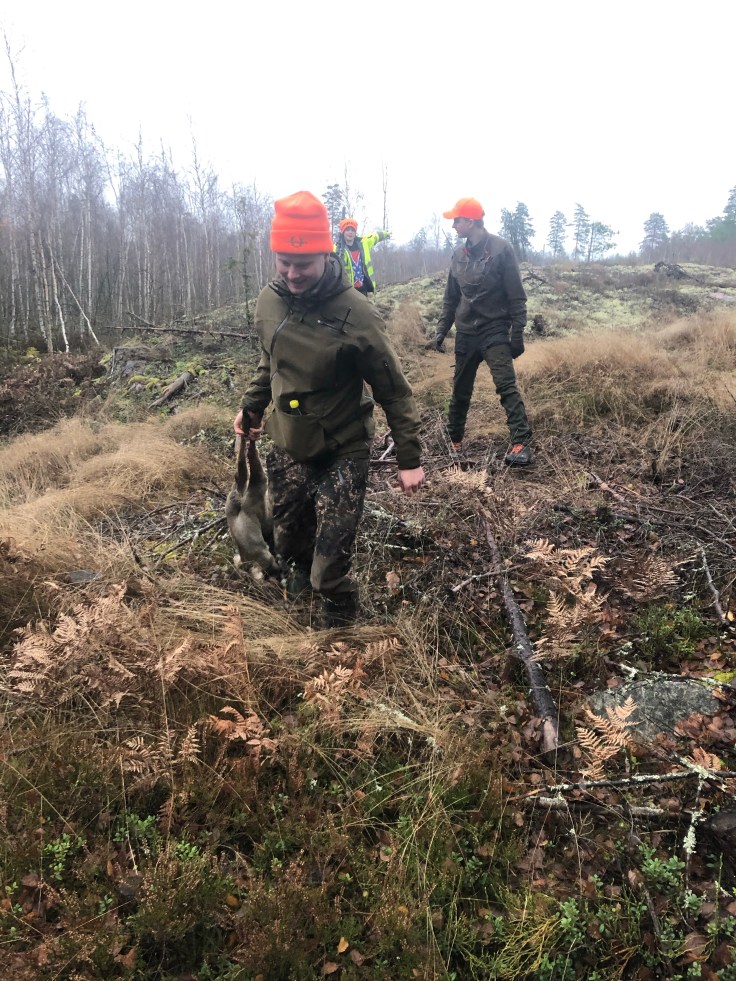 Jag satt nära vägen för att passa så inget drev gick över vägen. Bella drev ett rådjur förbi Emil och mot mitt håll. Men jag skrämde rådjuret då jag började gå mot vägen. Synd att timingen var dålig, det hade ju varit så kul att få skjuta för henne.