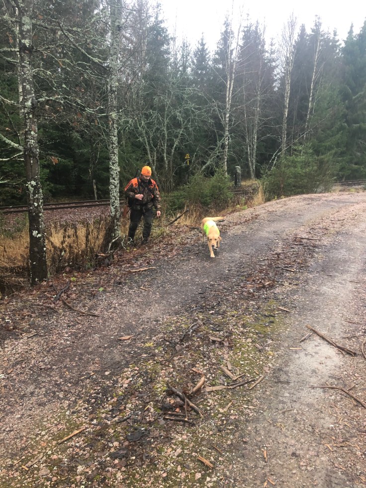 Efter supergod lunch bestående av vildsvinskebab gick jag med Bella. Hon var taggad och for iväg snabbt. Hon fick upp något ganska direkt och drev ganska långt. Såg inte vad hon drev tyvärr. Annars var det ös även här. Ganska direkt fälldes två dovkalvar och flera hundar hade bra drev. Älg och vildsvin fanns här och tre vildsvin till fälldes. Jäkligt roligt! Sen blev det en del pyssel i slakteriet.