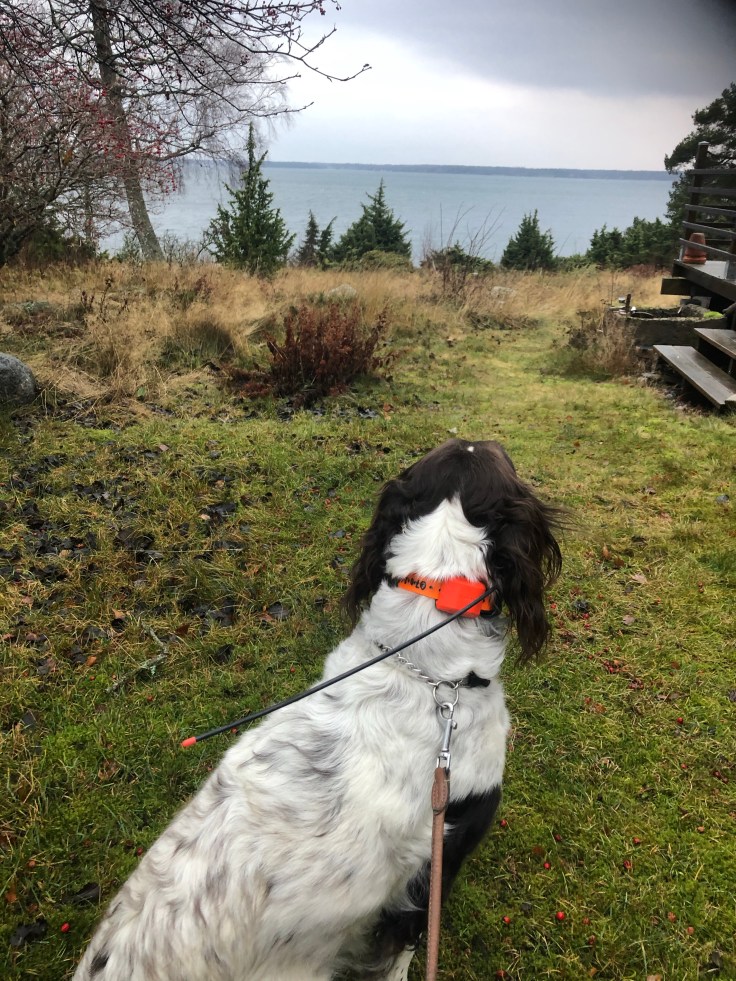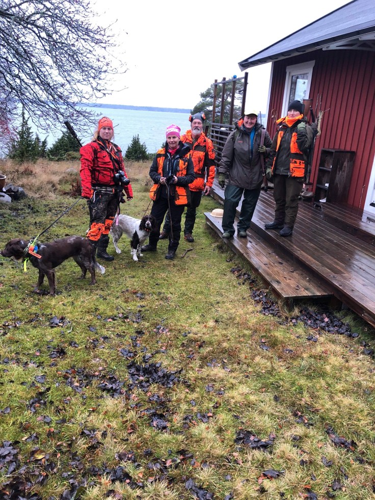 Efter båtfärden planerade vi jakten under en fika i Beas och hennes föräldrars stuga. Myyys! Sen var det dags att släppa hundarna och ut med skyttar. Bella fick upp och drev rådjur redan efter par minuter och Lansa även så. Drevskallen rungade på ön. Underbart!