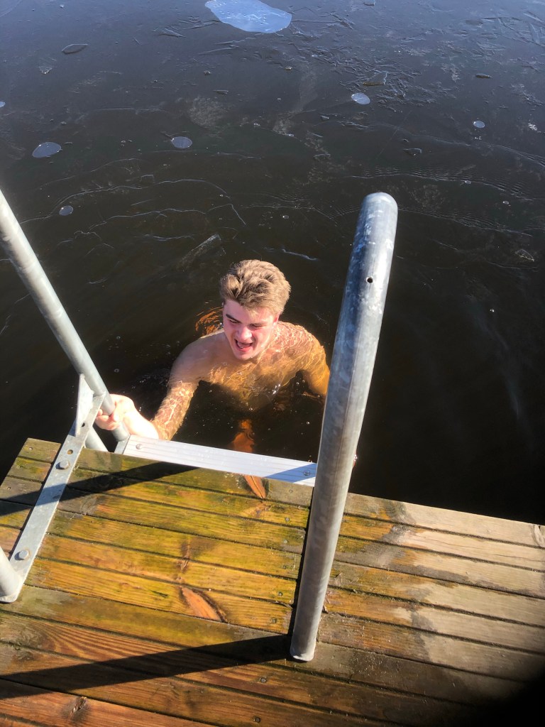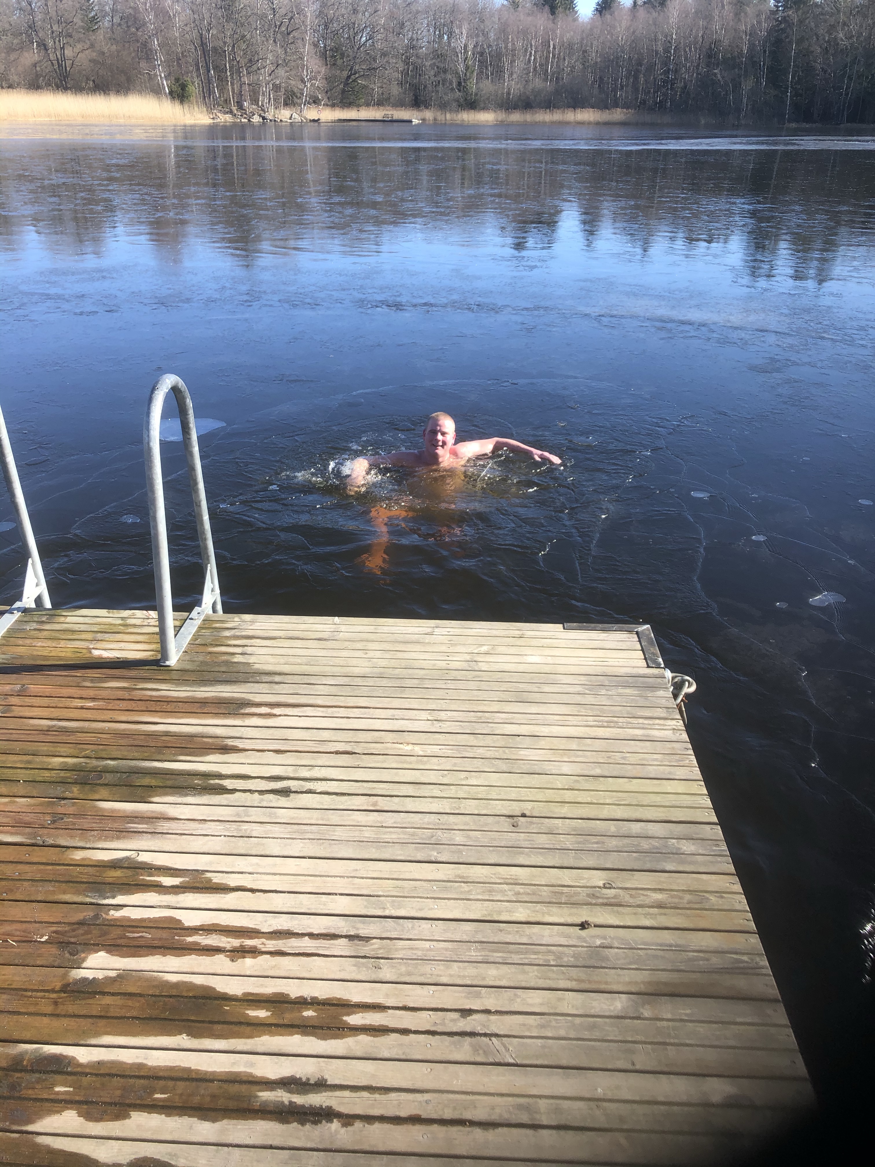 Idag var det fokus friluftsliv! Gillar det. Min son och min syster med familj hängde med. Bad i sjön och lite bastu på det. Jag fick börja med att hugga upp isen med yxan så vi kunde komma i vattnet. Härligt!