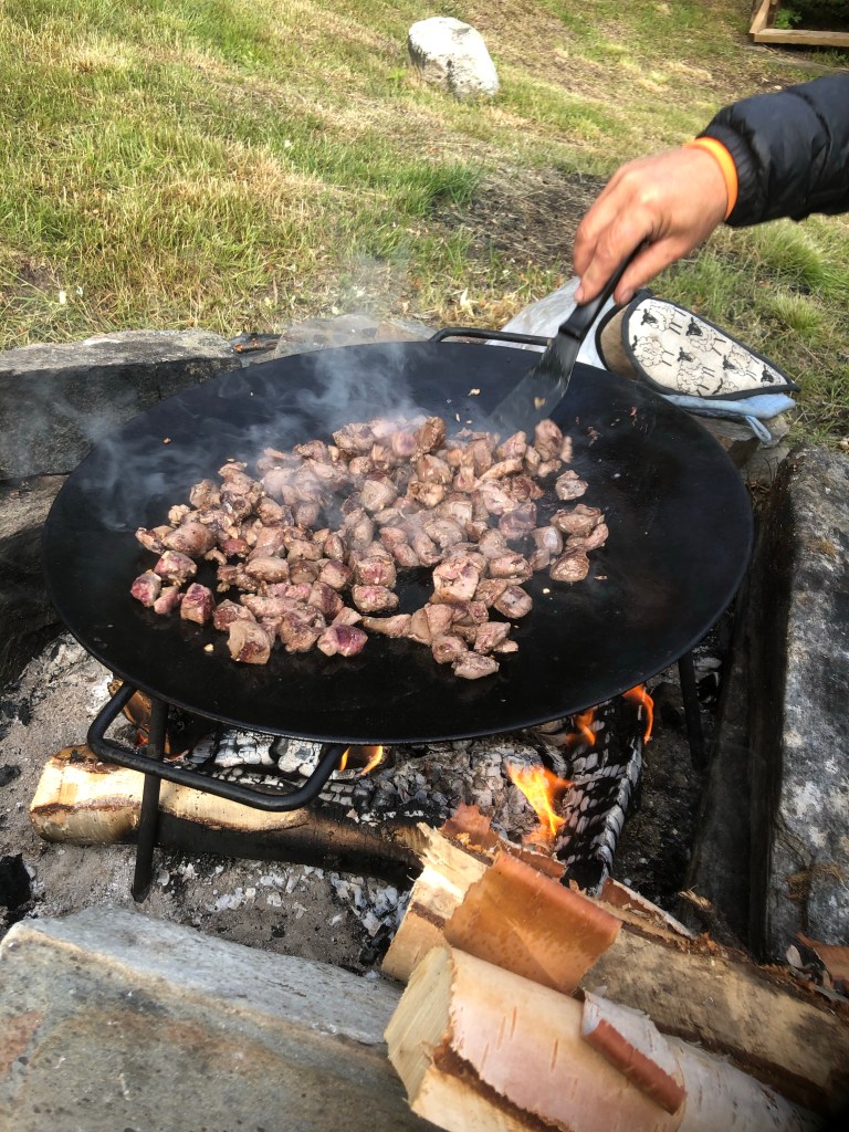 Vi la även tid på att laga maten över öppen eld på fjället. Vid stugan tillagades all mat i murrikkan. Så gott!