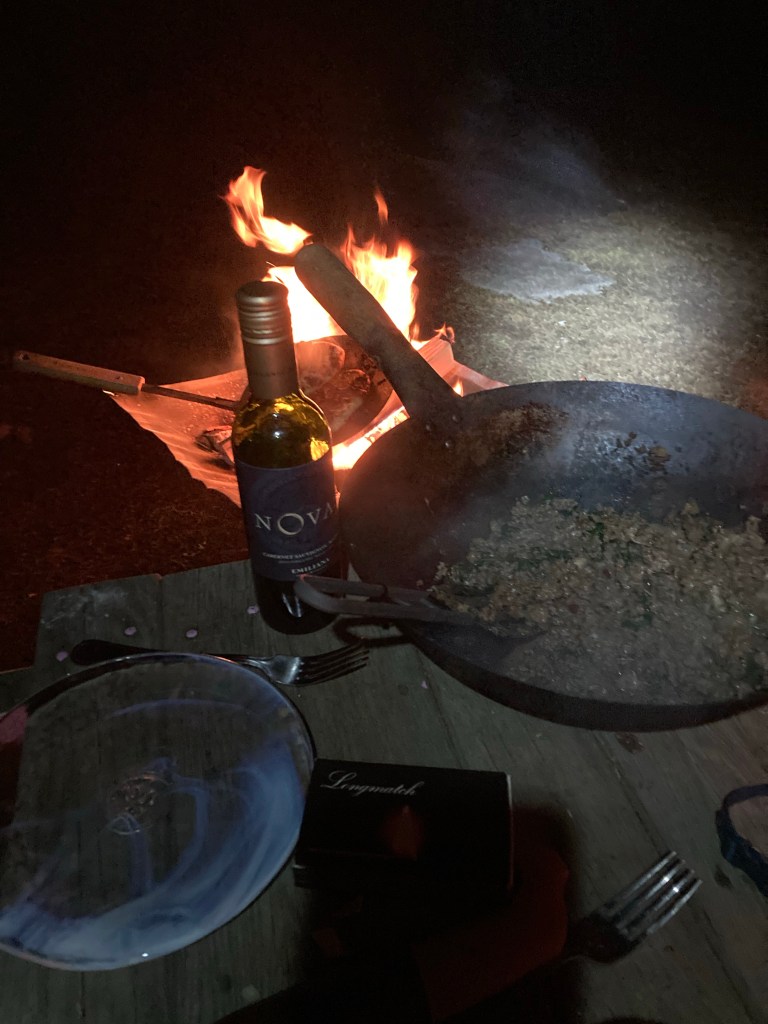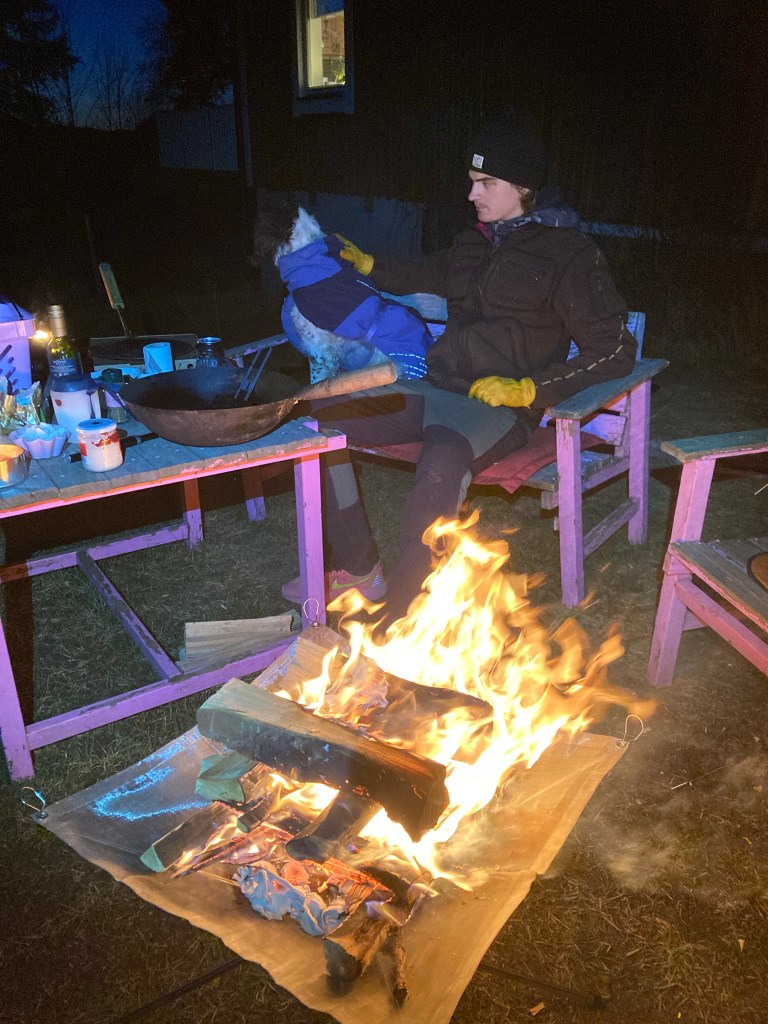 Även fast jag har varit dålig så är jag så less på att bara vara hemma och att inte kunna göra något. Så trots ryggskott bestämde jag mig för att laga mat ute idag. På tomten! Sonen tände eld och jag fixade lite enkel mat.