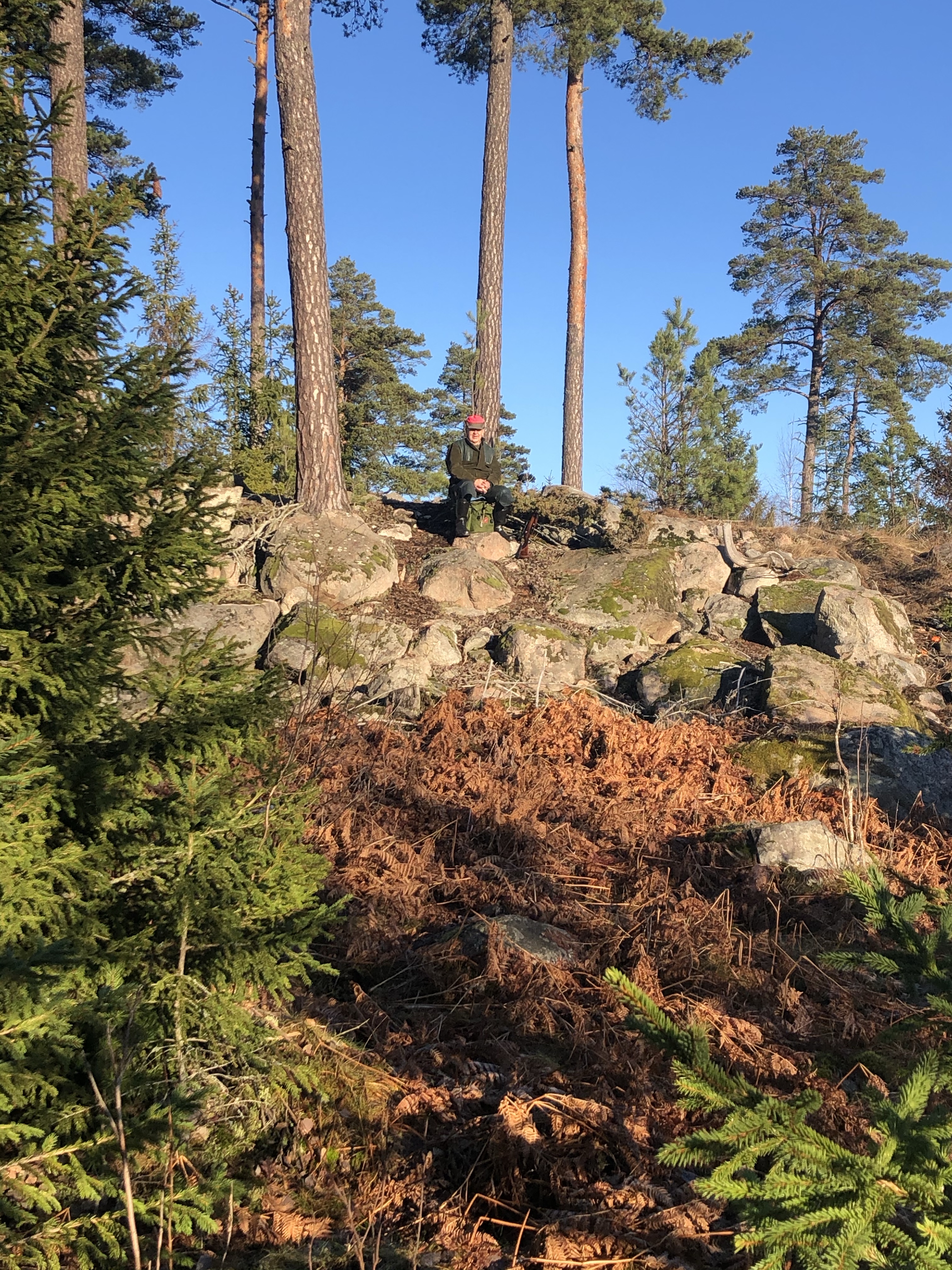 Första såten inleddes med ett par rådjursdrev. Sen var det lugnt och inga grisar låg på det vanliga stället. Börjar misströsta lite! När det är ca 100 meter kvar till passlinjen bryter allt plötsligt loss och det blir galen action i skogen. Bella tar upp vildsvin som ligger och trycker 50-60 meter framför mig. Hon skäller några gånger med sitt extremt mörka och dova skall som gör att jag numer med säkerhet vet att det är vildsvin. Sen går vildsvinen loss och går ut till höger om mig mot håller där Bea och Lansa är. Varnar på radion. Bella driver sen flocken ner bakom mig, jag har dem på bra skotthåll och skymtar några svarta öron men ser inte mer än så. Bella ligger i och håller i länge. Så roligt! Duktig vovve!