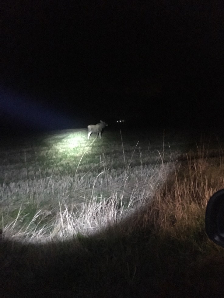 Nu var vi mätta och belåtna och redo att ge oss ut igen. Jag fick återigen ett bra pass. Igen fick Jossans hund upp en älg. Den vek av, inte åt mitt håll…och ett skott hörs.. och en tjur ligger. Strax efter så låg en gris också.